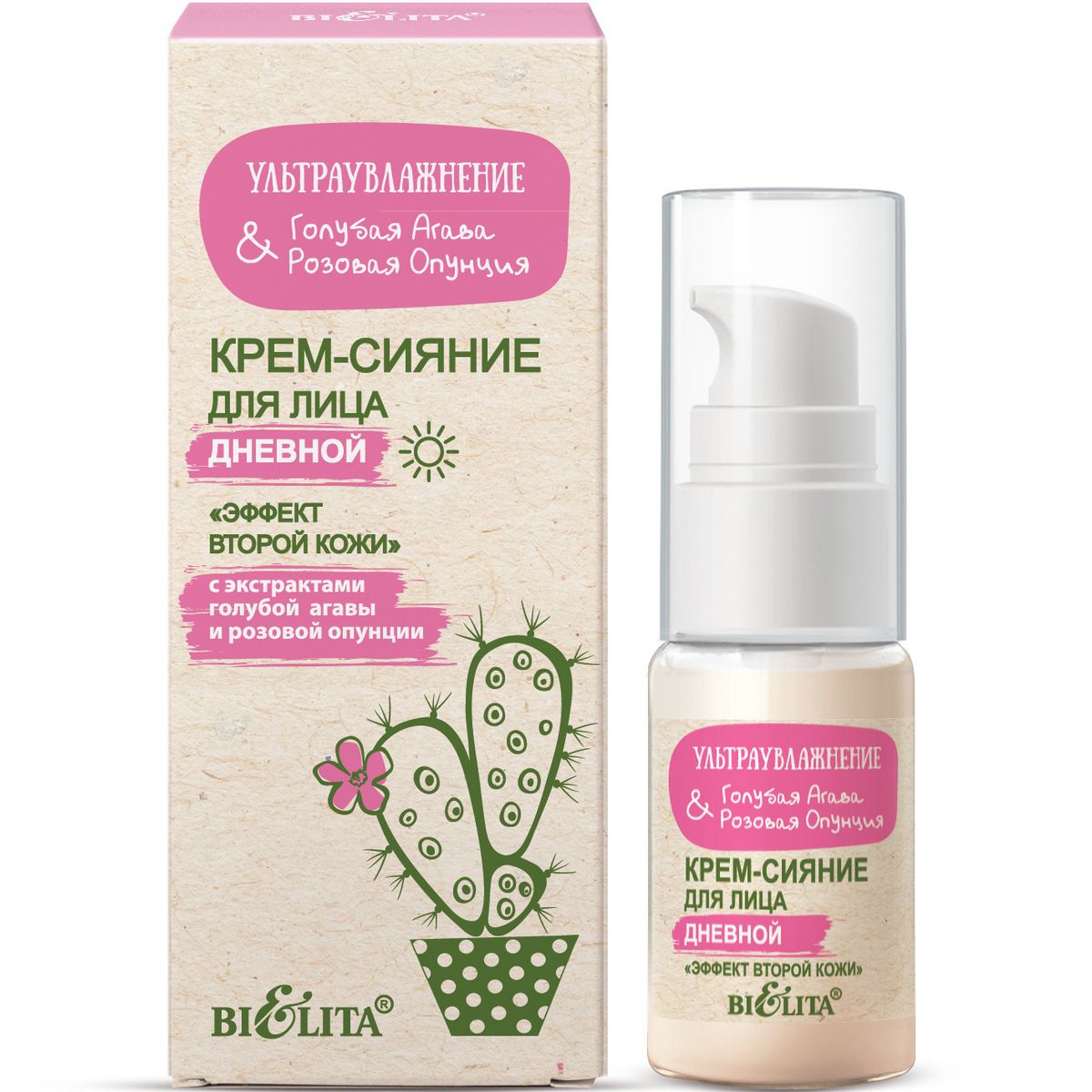 Крем-сияние для лица Дневной "Эффект второй кожи" Ультраувлажнение. Голубая агава & розовая опунция 24мл