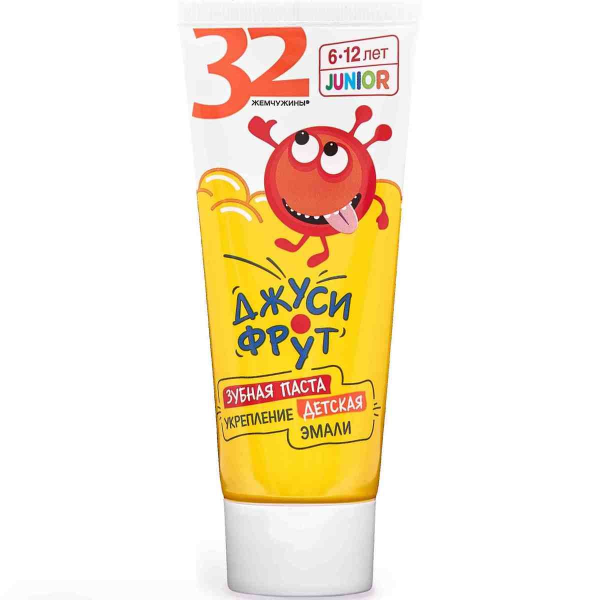 Зубная паста 32 Жемчужины JUNIOR Укрепление эмали Джуси-фрут 6-12 лет 75г
